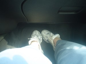 This is me waiting in the car …for the police …while Doug is outside arguing with the man who rear-ended us.  By the way, since I haven’t mastered taking pictures of my face without making my nose look disproportionately large, I’m logging my journey by foot.  Anyway, at that moment I was praying this would not be indicative of the rest of our week.  In the side view mirror I see the other man’s wife and elderly mother with their heads down.  I assume they are praying too….”please Lord, deliver us from these men-folk!”.