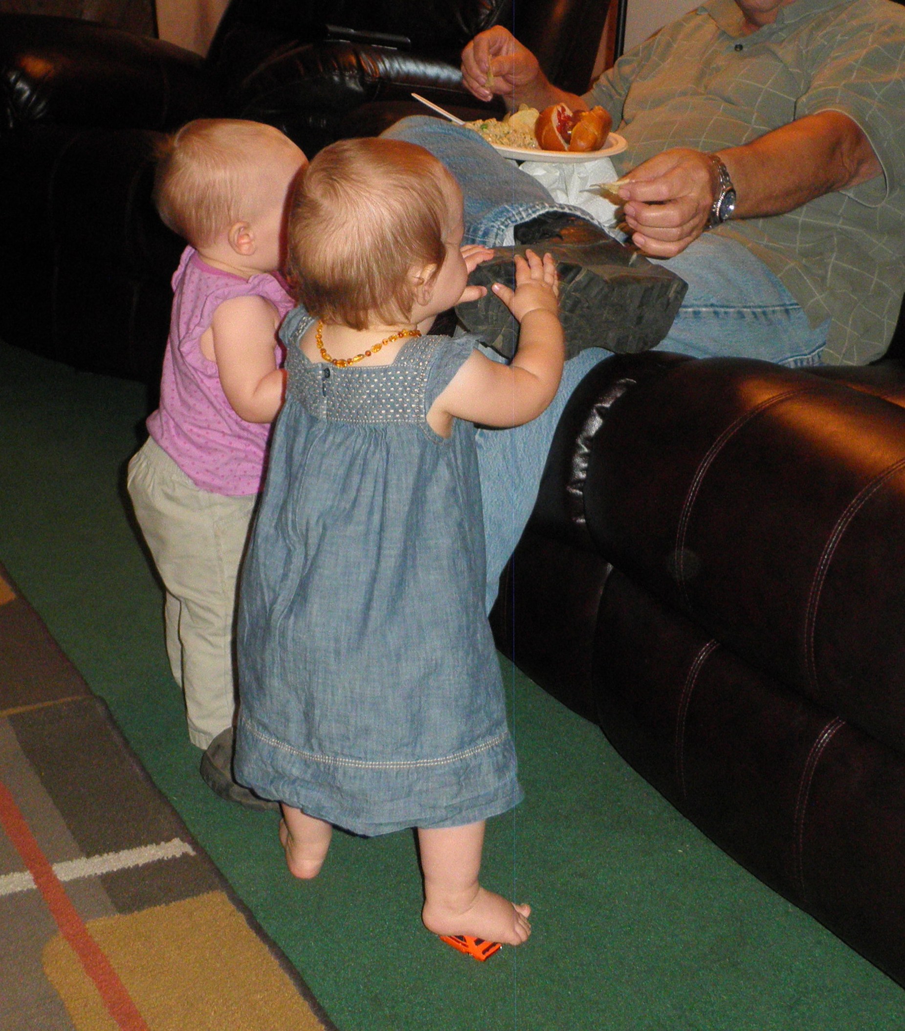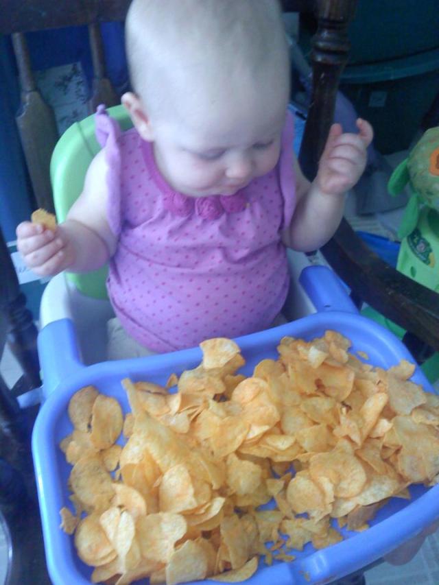 Two year old brother gives one year old sister "a chip".... we didn't let her eat them all!