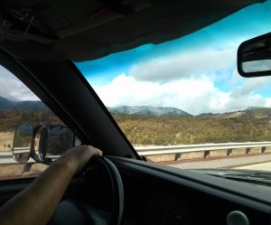 The blue sky and early dusting of snow as we crossed mountains last week…