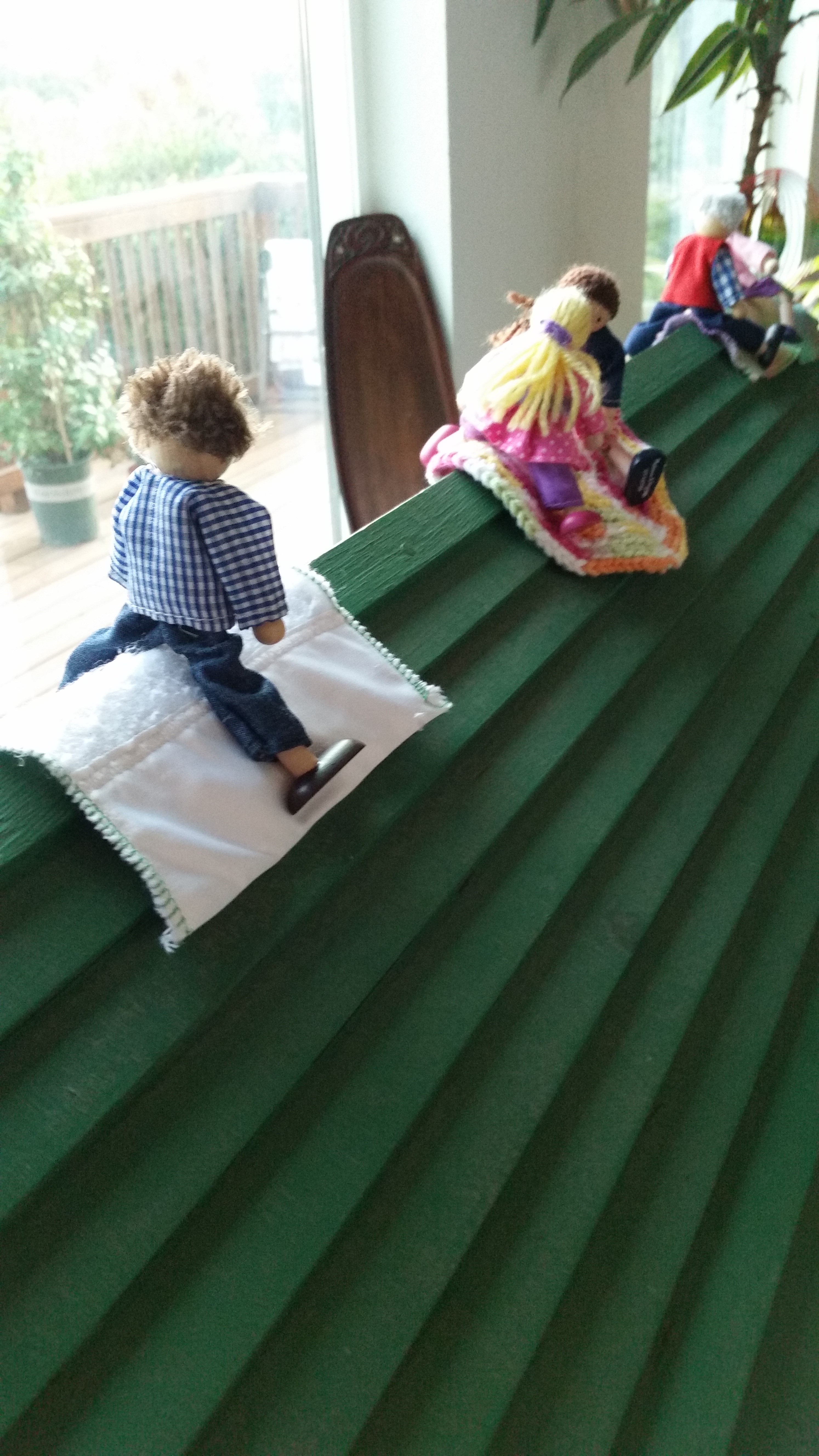 My five year-old granddaughter redecorated the doll house.  Then she placed the family on the roof for a picnic.