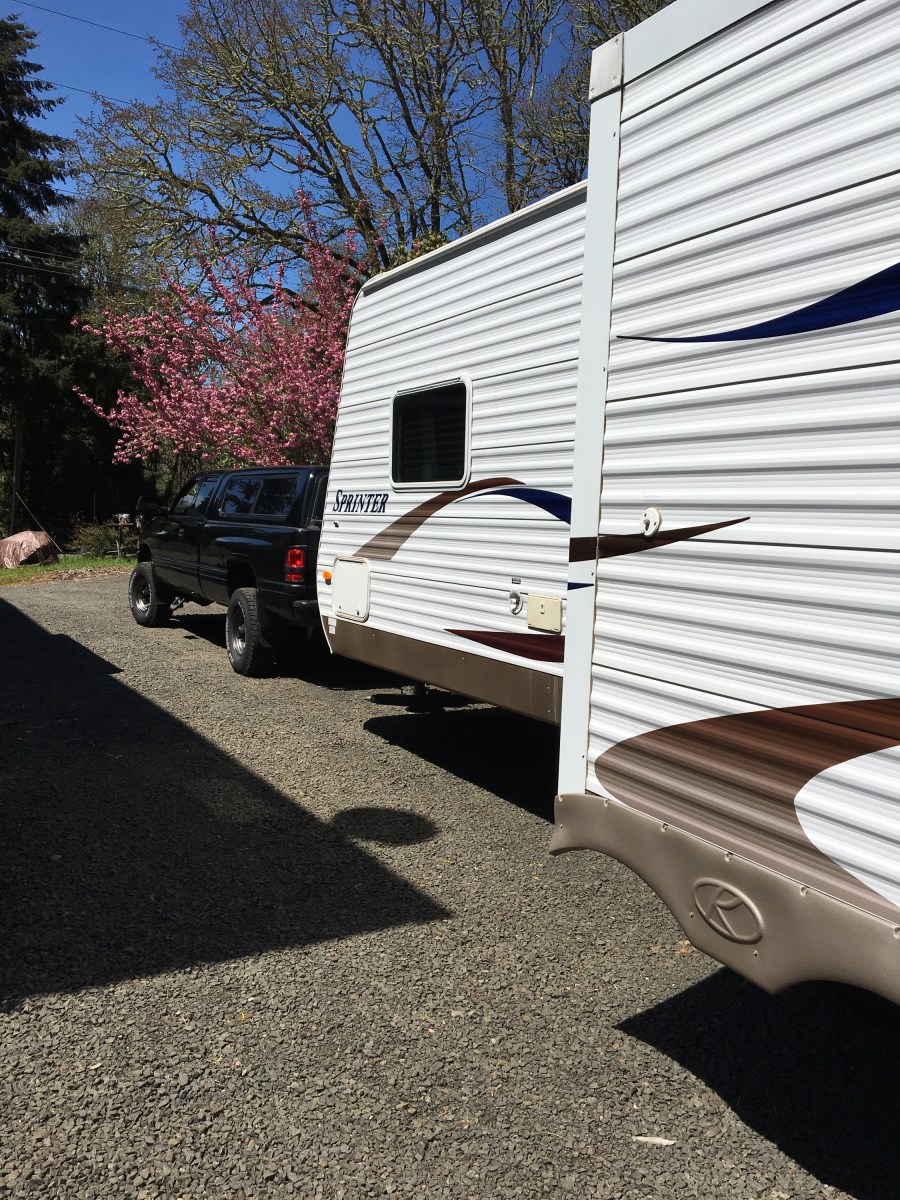 We’ve got a wonderful friend holding down the fort at home with Mom. Our gently used travel trailer is packed full. I didn’t know which clothes to bring so I pretty much packed it all. And our trusty “Black Beauty”, aka – the pick-up truck, is ready for the road.