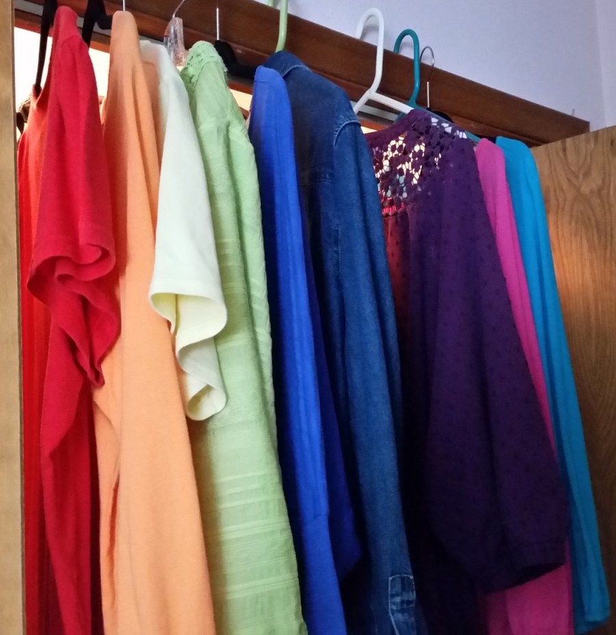 Last Sunday, on my weekly post, I was going to include the fact I'd achieved ROY.G.BIV in my closet. Months earlier I'd complimented my husband on his new-found closet organizing, color coordinating skills. He waved across his shirts and said, "ROYGBIV" (pronounced roy-ga-biv). I'd never heard the term before. red-orange-yellow-green-blue-indigo-violet. Am I the only person on the planet who did not know that …